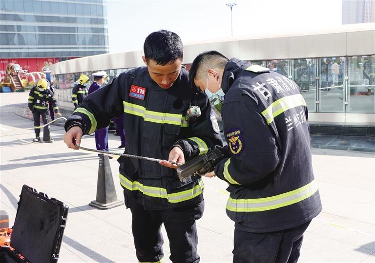 消防救援人员对干粉灭火器、应急照明灯、疏散标志、水枪等各类消防器材的真假产品进行对比分析,向群众普及如何购买合格的消防产品。