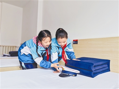 学生现场观摩体验了各类消防器材、消防车辆的用途和使用方法,观看了消防员绳索攀爬登高项目以及寝室内务整理等。