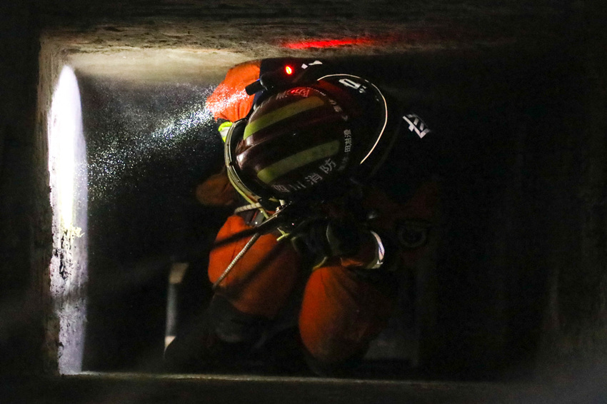 在深井救援中消防救援人员正在利用绳索下降至被困人员所在位置。四川省消防救援总队供图
