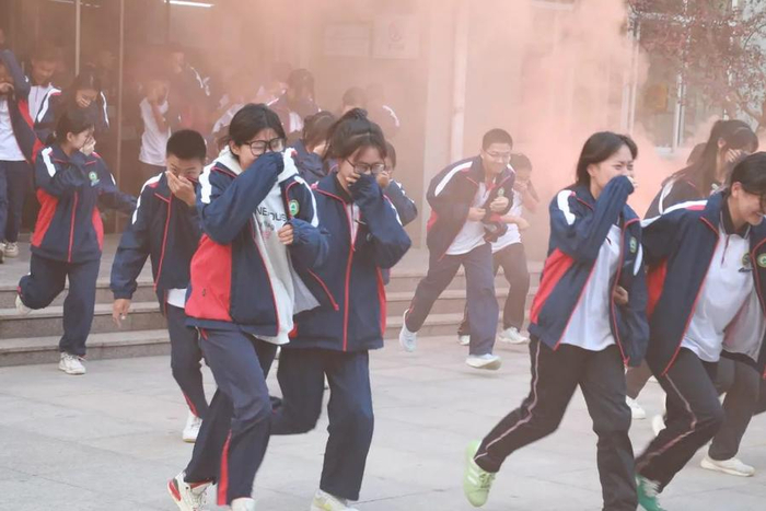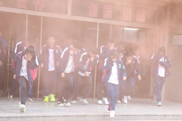 整个疏散演练过程,疏散状况有序安全,绝大多数同学都做到了手捂口鼻、弯腰撤离,师生自我保护意识就是在这样的演练中不断得到加强。