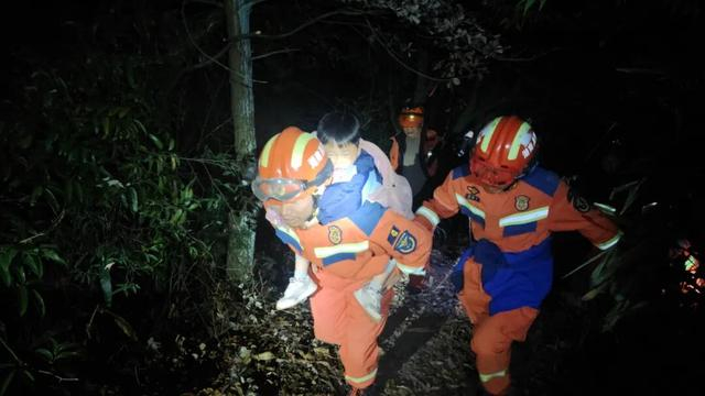 20时42分,消防救援人员抵达榔概山山脚下,与先期到场的新邵县应急管理局工作人员会合。随后,在当地向导带领下,联合救援组携带专业装备和补给,立即徒步进山,向被困人员可能所在的区域展开拉网式搜索。