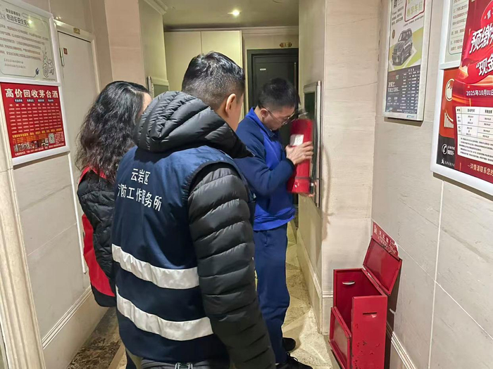 在贵阳市未来方舟、中建华府、中大国际等高层小区,宣传人员结合典型高层火灾案例,用通俗语言剖析“烟囱效应”等火灾特点,详细讲解报警、逃生知识,并重点提醒居民保持楼道畅通、规范电动车充电、定期检查家中电气燃气线路。普及“小火快跑、浓烟关门”的逃生原则,强调切勿乘坐电梯、贪恋财物,并将宣传与隐患排查相结合,现场