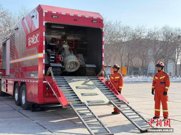乌鲁木齐消防救援机动大队内,指战员正在进行抢险救援车的演练。张家伟 摄大队训练场上,实战训练如火如荼:搜救犬开展箱体搜索、废墟搜救、障碍翻越等专项科目;冰面救援训练紧贴新疆冬季特点,队员熟练运用冰锥、绳索、救生装备,快速完成落水人员救助、冰面转移等实战处置。