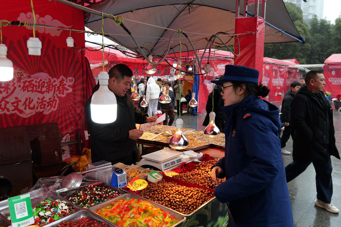 “老板,年货备货多,可别在配电箱旁堆货物,电线要及时检查有没有老化的。”在摊位前,宣传人员重点叮嘱商户注意用电、用火安全,讲解烟花爆竹正确燃放、安全存放及应急处置要点,提醒大家牢记“三清三关”。对前来置办年货的群众,宣传人员普及家庭防火、电动车充电、初期火灾扑救和火场逃生自救等知识,解答大家日常遇到的消防疑问。